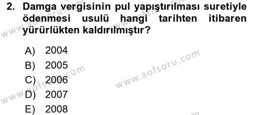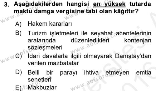 Damga Vergisi Ve Harçlar Bilgisi Dersi 2015 - 2016 Yılı (Vize) Ara Sınav Soruları