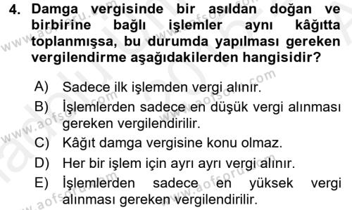 Aöf Damga Vergisi Ve Harçlar Bilgisi dersi 2015 - 2016 yılı (Vize) Ara sınavı sorularını çözerek sınavlara daha hazırlıklı olabilirsiniz. Damga Vergisi Ve Harçlar Bilgisi dersi vize (ara sınavı), final (dönem sonu sınavı), tek ders, üç ders ve yaz okulu sınav ve sorularına Damga Vergisi Ve Harçlar Bilgisi Dersi sayfasından ulaşabilirsiniz.