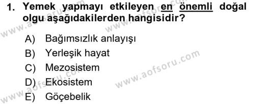 Gastronomi Tarihi Dersi 2017 - 2018 Yılı (Vize) Ara Sınav Soruları