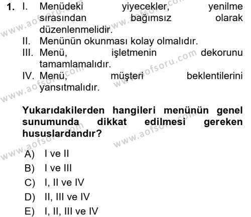 Menü Yönetimi Dersi 2017 - 2018 Yılı (Vize) Ara Sınav Soruları