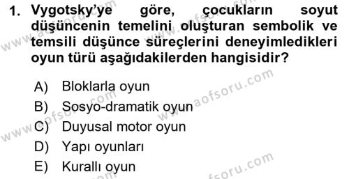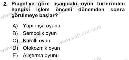 Çocuk Ve Oyun Dersi 2018 - 2019 Yılı (Vize) Ara Sınav Soruları