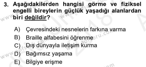 Aöf Çoklu Engellilerin Bakım ve Rehabilitasyonu dersi 2018 - 2019 yılı (Vize) Ara sınavı sorularını çözerek sınavlara daha hazırlıklı olabilirsiniz. Çoklu Engellilerin Bakım ve Rehabilitasyonu dersi vize (ara sınavı), final (dönem sonu sınavı), tek ders, üç ders ve yaz okulu sınav ve sorularına Çoklu Engellilerin Bakım ve Rehabilitasyonu Dersi sayfasından ulaşabilirsiniz.