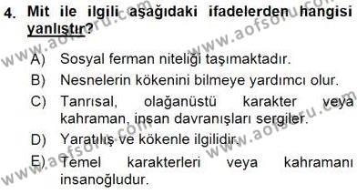 Türk Edebiyatının Mitolojik Kaynakları Dersi 2015 - 2016 Yılı (Vize) Ara Sınav Soruları