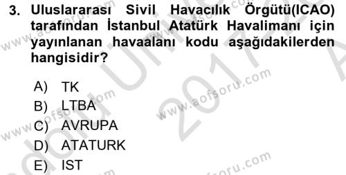 Aöf Havaalanı Sistemi dersi 2017 - 2018 yılı (Vize) Ara sınavı sorularını çözerek sınavlara daha hazırlıklı olabilirsiniz. Havaalanı Sistemi dersi vize (ara sınavı), final (dönem sonu sınavı), tek ders, üç ders ve yaz okulu sınav ve sorularına Havaalanı Sistemi Dersi sayfasından ulaşabilirsiniz.