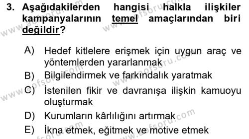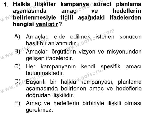 Halkla İlişkiler Kampanya Analizi Dersi 2018 - 2019 Yılı (Vize) Ara Sınav Soruları