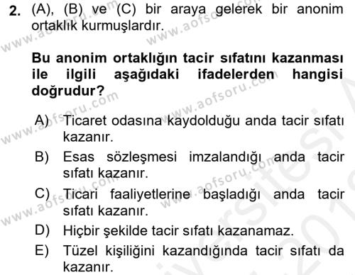 Aöf Ticaret Hukuku dersi 2017 - 2018 yılı (Vize) Ara sınavı sorularını çözerek sınavlara daha hazırlıklı olabilirsiniz. Ticaret Hukuku dersi vize (ara sınavı), final (dönem sonu sınavı), tek ders, üç ders ve yaz okulu sınav ve sorularına Ticaret Hukuku Dersi sayfasından ulaşabilirsiniz.