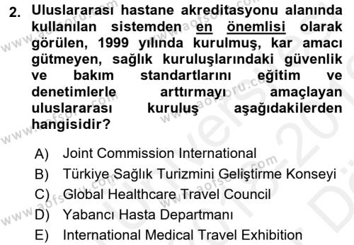 Termal ve Spa Hizmetleri Dersi 2018 - 2019 Yılı (Vize) Ara Sınav Soruları