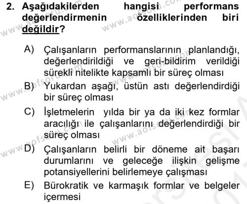 Performans ve Kariyer Yönetimi Dersi 2016 - 2017 Yılı (Final) Dönem Sonu Sınav Soruları