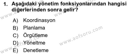 Yiyecek İçecek Yönetimi Dersi 2018 - 2019 Yılı (Vize) Ara Sınav Soruları