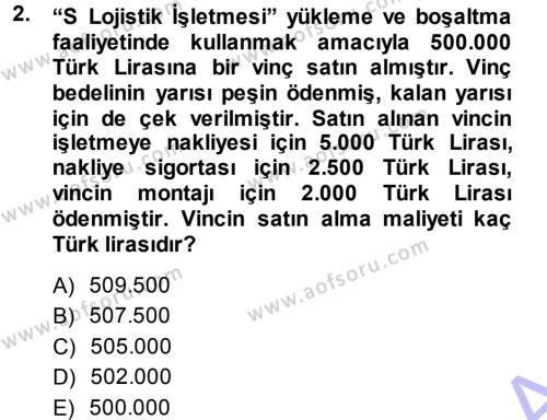 Lojistik Maliyetleri ve Raporlama 1 Dersi 2013 - 2014 Yılı (Vize) Ara Sınav Soruları