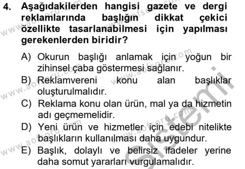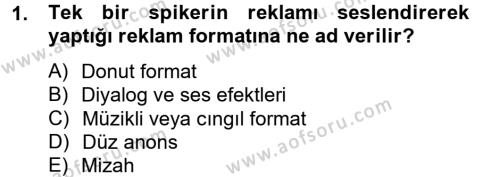 Medya ve Reklam Dersi 2012 - 2013 Yılı (Vize) Ara Sınav Soruları