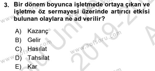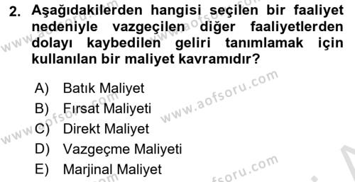 Sağlık Kurumlarında Maliyet Muhasebesi Dersi 2019 - 2020 Yılı (Vize) Ara Sınav Soruları