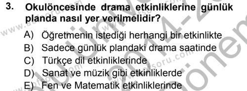 Okulöncesinde Drama Dersi 2014 - 2015 Yılı (Final) Dönem Sonu Sınav Soruları