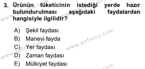 Pazarlama İlkeleri Dersi 2016 - 2017 Yılı (Vize) Ara Sınav Soruları