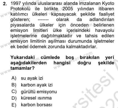 Havayolu Pazarlaması Dersi 2019 - 2020 Yılı (Final) Dönem Sonu Sınav Soruları
