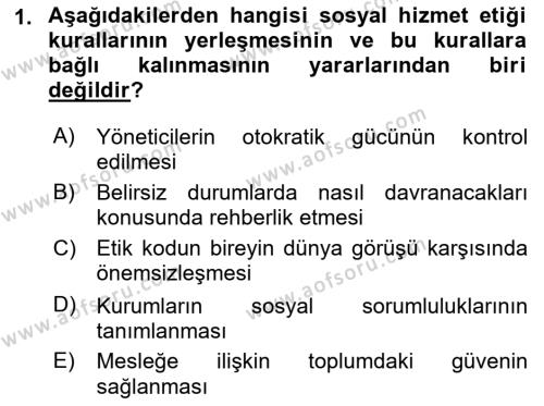 Sosyal Hizmet Etiği Dersi 2017 - 2018 Yılı (Final) Dönem Sonu Sınav Soruları
