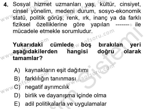 Aöf Sosyal Hizmet Etiği dersi 2018 - 2019 yılı 3 Ders sınavı sorularını çözerek sınavlara daha hazırlıklı olabilirsiniz. Sosyal Hizmet Etiği dersi vize (ara sınavı), final (dönem sonu sınavı), tek ders, üç ders ve yaz okulu sınav ve sorularına Sosyal Hizmet Etiği Dersi sayfasından ulaşabilirsiniz.