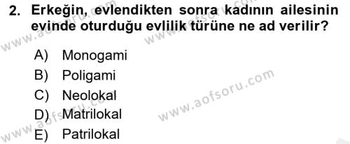 Aile Sosyolojisi Dersi 2018 - 2019 Yılı (Vize) Ara Sınav Soruları