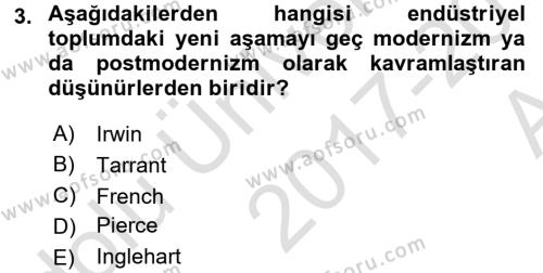 Çevre Sosyolojisi Dersi 2017 - 2018 Yılı (Vize) Ara Sınav Soruları