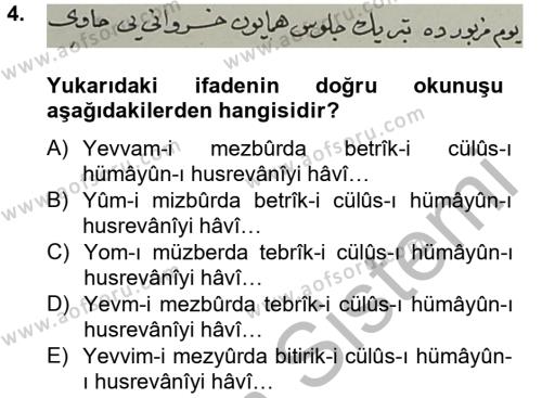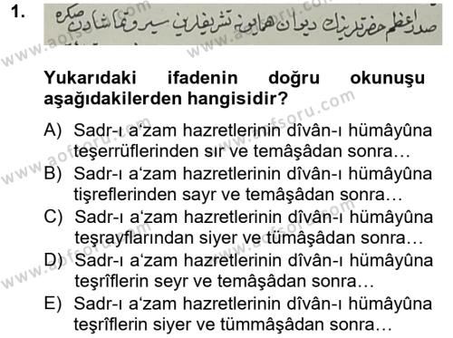 Aöf Osmanlı Türkçesi Metinleri 2 dersi 2012 - 2013 yılı (Vize) Ara sınavı sorularını çözerek sınavlara daha hazırlıklı olabilirsiniz. Osmanlı Türkçesi Metinleri 2 dersi vize (ara sınavı), final (dönem sonu sınavı), tek ders, üç ders ve yaz okulu sınav ve sorularına Osmanlı Türkçesi Metinleri 2 Dersi sayfasından ulaşabilirsiniz.