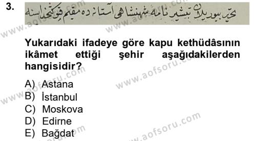 Osmanlı Türkçesi Metinleri 2 Dersi 2012 - 2013 Yılı (Vize) Ara Sınav Soruları