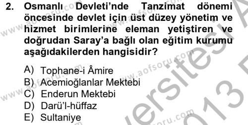 Türk Eğitim Tarihi Dersi 2012 - 2013 Yılı (Vize) Ara Sınav Soruları