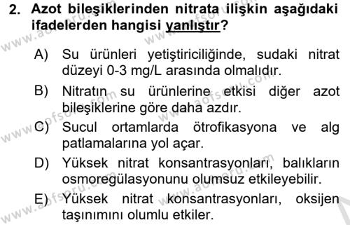 Balık Yetiştiriciliği Dersi 2016 - 2017 Yılı (Final) Dönem Sonu Sınav Soruları
