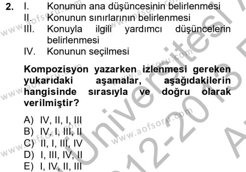 Aöf Türk Dili 2 dersi 2012 - 2013 yılı (Vize) Ara sınavı sorularını çözerek sınavlara daha hazırlıklı olabilirsiniz. Türk Dili 2 dersi vize (ara sınavı), final (dönem sonu sınavı), tek ders, üç ders ve yaz okulu sınav ve sorularına Türk Dili 2 Dersi sayfasından ulaşabilirsiniz.