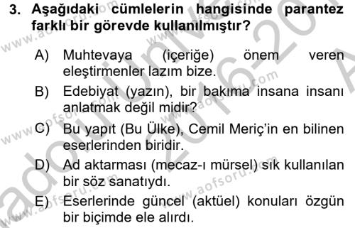 Aöf Türk Dili 2 dersi 2016 - 2017 yılı (Vize) Ara sınavı sorularını çözerek sınavlara daha hazırlıklı olabilirsiniz. Türk Dili 2 dersi vize (ara sınavı), final (dönem sonu sınavı), tek ders, üç ders ve yaz okulu sınav ve sorularına Türk Dili 2 Dersi sayfasından ulaşabilirsiniz.