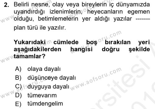 Aöf Türk Dili 2 dersi 2018 - 2019 yılı (Vize) Ara sınavı sorularını çözerek sınavlara daha hazırlıklı olabilirsiniz. Türk Dili 2 dersi vize (ara sınavı), final (dönem sonu sınavı), tek ders, üç ders ve yaz okulu sınav ve sorularına Türk Dili 2 Dersi sayfasından ulaşabilirsiniz.
