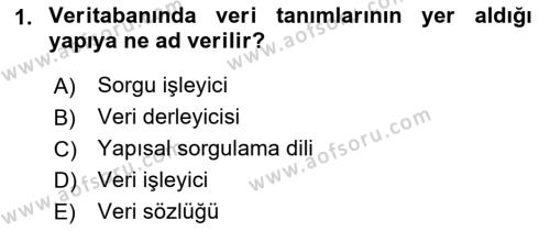 Aöf Veritabanı Sistemleri dersi 2018 - 2019 yılı (Vize) Ara sınavı sorularını çözerek sınavlara daha hazırlıklı olabilirsiniz. Veritabanı Sistemleri dersi vize (ara sınavı), final (dönem sonu sınavı), tek ders, üç ders ve yaz okulu sınav ve sorularına Veritabanı Sistemleri Dersi sayfasından ulaşabilirsiniz.