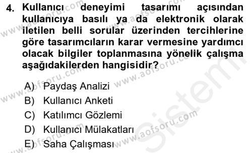 Kullanıcı Deneyimi Tasarımı Dersi 2017 - 2018 Yılı (Final) Dönem Sonu Sınav Soruları